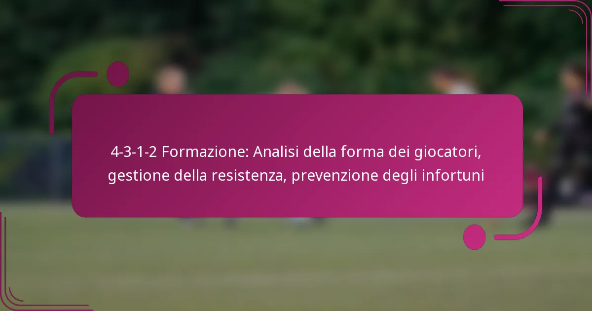 La formazione 4-3-1-2 è un assetto tattico nel calcio che enfatizza il controllo del centrocampo e un approccio equilibrato tra difesa e attacco. Per prosperare in questa formazione, i giocatori devono concentrarsi sulla forma fisica, sulla gestione della resistenza e sulla prevenzione degli infortuni, assicurandosi di poter soddisfare le esigenze sia dei ruoli offensivi che difensivi in modo efficace.