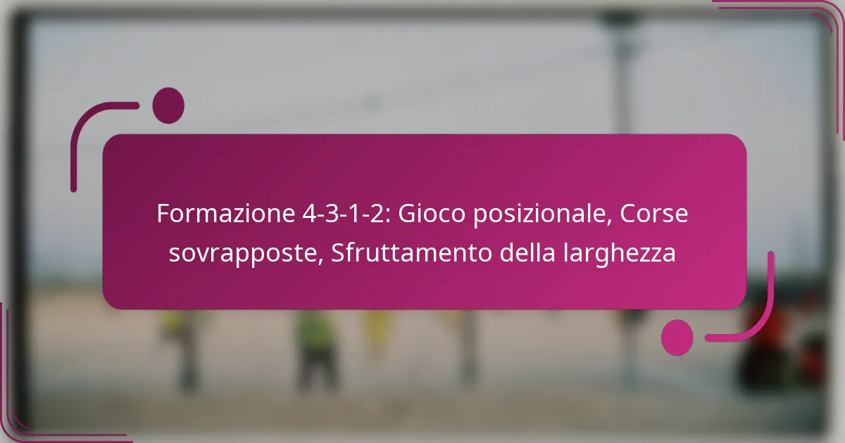 Il gioco posizionale nella formazione 4-3-1-2 enfatizza il mantenimento della struttura mentre si creano spazi e opzioni per i giocatori. Questo approccio facilita un movimento efficace della palla e migliora sia le capacità offensive che difensive.