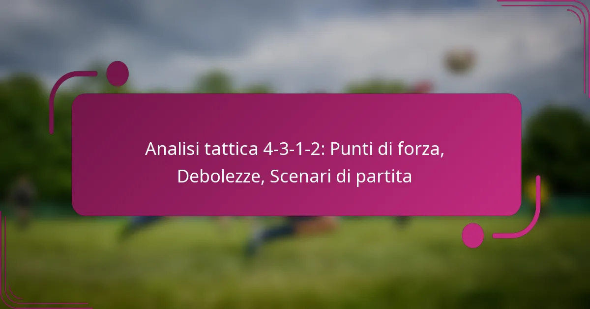 La formazione 4-3-1-2 è un assetto tattico nel calcio che prevede quattro difensori, tre centrocampisti, un centrocampista offensivo e due attaccanti. Questa formazione è progettata per migliorare il controllo del centrocampo e facilitare transizioni rapide, rendendola efficace per le squadre che cercano di dominare il possesso palla mantenendo una solida struttura difensiva. Tuttavia, presenta anche alcune debolezze, in particolare contro il gioco sulle fasce e in situazioni di contropiede, che possono mettere in discussione la sua efficacia complessiva in varie situazioni di partita.