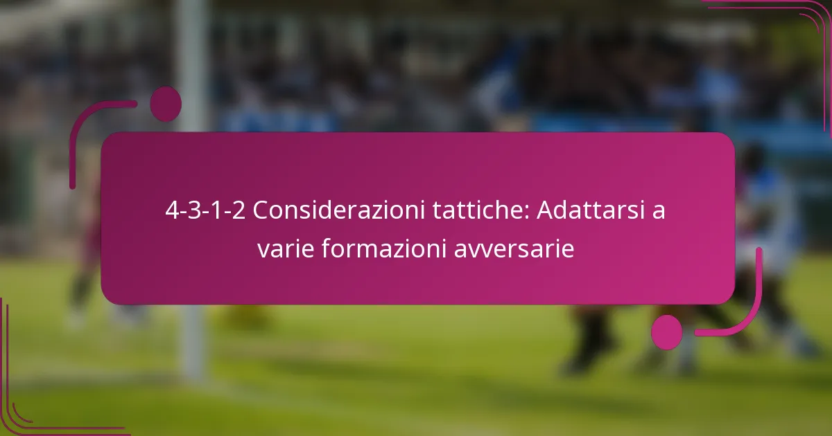 La formazione 4-3-1-2 offre un approccio bilanciato, combinando solidità difensiva con potenziale offensivo. Comprendere le considerazioni tattiche avanzate è essenziale per adattarsi efficacemente a varie formazioni avversarie.