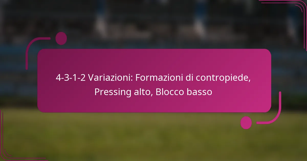 La formazione 4-3-1-2 è un assetto tattico nel calcio che prevede quattro difensori, tre centrocampisti, un centrocampista offensivo e due attaccanti. Questa formazione non solo enfatizza una forte presenza a centrocampo, ma consente anche di adattarsi a varie strategie, come le formazioni di contropiede, il pressing alto e il blocco basso. Ogni variazione sfrutta i punti di forza intrinseci della formazione per sfruttare le debolezze degli avversari e migliorare le prestazioni complessive della squadra.